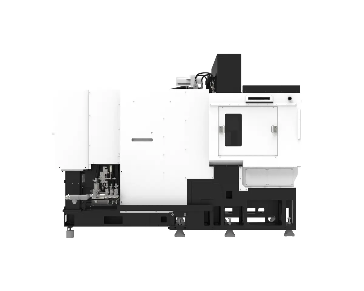 • The combination of minimizing the machine height by minimizing the machining chamber and NTC's low-floor gantry transfer reduces the transfer height to 1650mm. The gantry stroke is shortened to 400 mm, enabling high-speed loading and unloading for higher productivity.